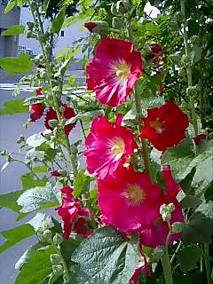 赤い花をつけた背の高い植物。